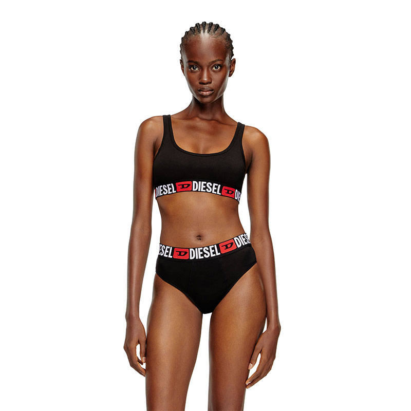 This women’s soft-cut bra is made from breathable stretch cotton. It features a scoop neckline and a wide elasticated band with Diesel and D logos.