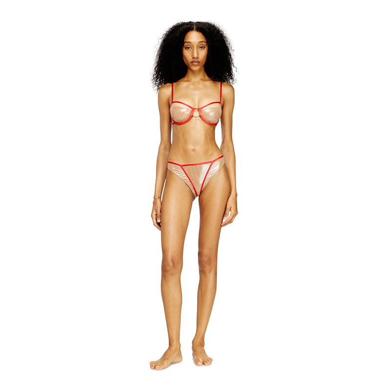 Brazilian briefs feature a bold and sensual design, characterized by soft transparencies and contrasting edge trims. Made from nylon and elastane, they offer stretch that ensures a perfect fit. Embellished with a rhinestone-studded Oval D detail on the front.