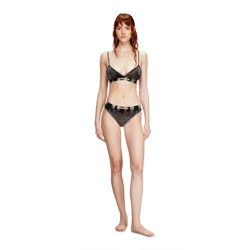 Made from breathable stretch cotton, these women’s panties have been specially treated to create a cool fade evocative of denim. The logo on the waist is an iconic Diesel Jean hallmark.