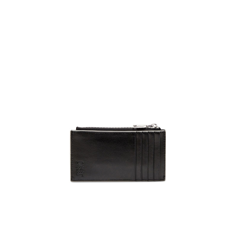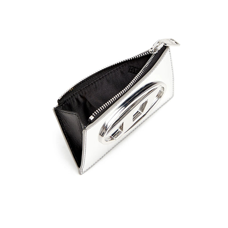 This women’s slim card wallet is crafted from responsibly sourced leather that gleams on one side with a mirror-like shine. The iconic Oval D hardware perfectly matches the striking finish. It’s fitted with external card slots and has a zipped top compartment to secure change or folded notes.