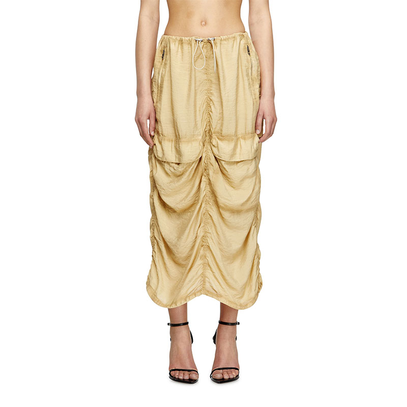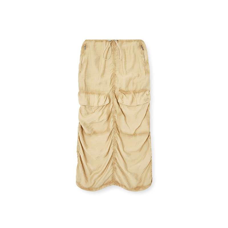 This wrinkled cargo midi skirt is made from a light and fluid blend of ECOVERO viscose and nylon, sprayed along the seams and stone-washed for a worn look. Gathered stitching and toggle-drawstrings manipulate its relaxed silhouette.