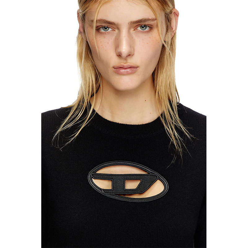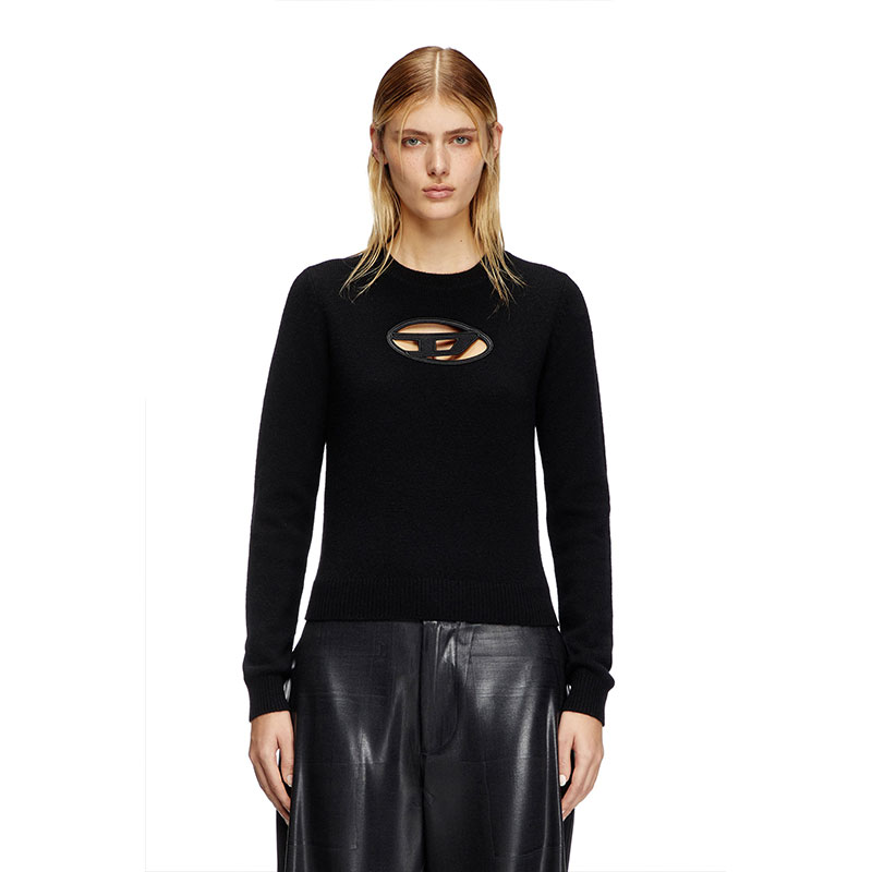 Women's crew-neck sweater spun from responsibly sourced wool and recycled cashmere. Shaped for a regular fit, this sumptuous knit showcases a large Oval D logo the front – the design employs tonal embroidery and peekaboo cut-outs, allowing for a flash of skin when worn sans an underlayer.