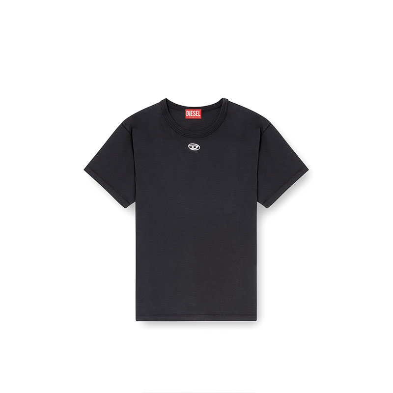 Cotton T-shirt with a crew neck and short sleeves. Cut to a regular fit, it's embellished with an injection-printed silver Oval D at the center, below the neck.