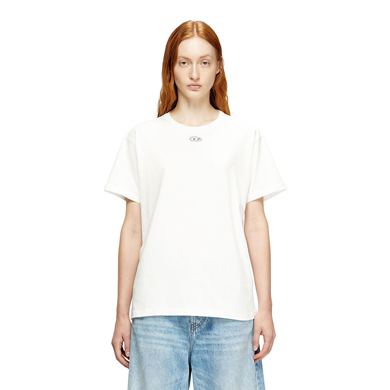 Diesel Women Cotton T-shirt with metallic Oval D White A203990JMBB