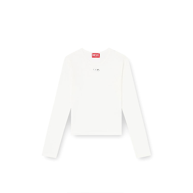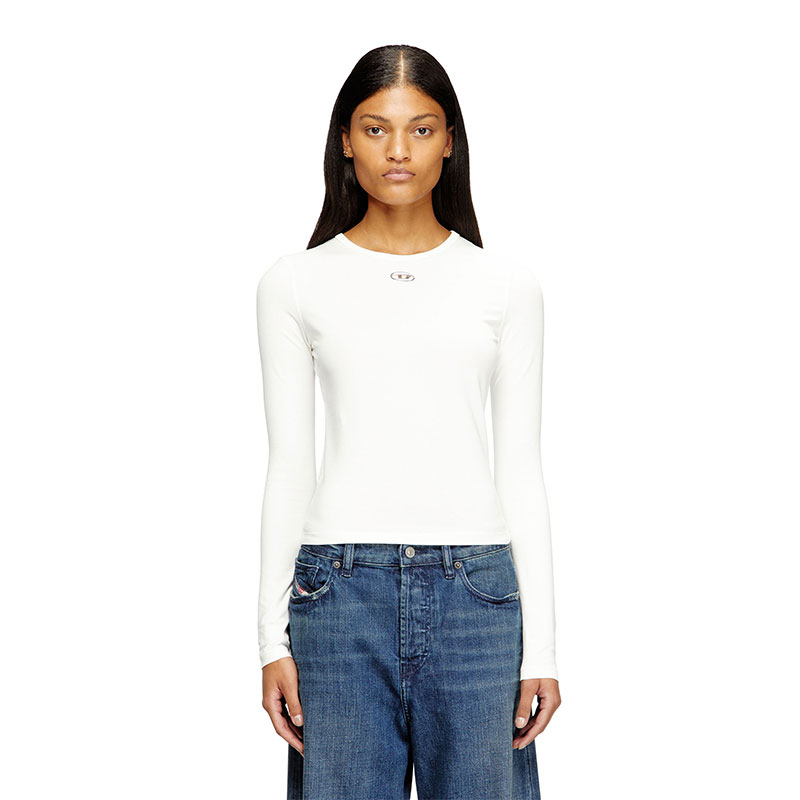 Slim-fit crewneck top with long sleeves. Made of stretch cotton, it features a silver injection-print Oval D logo on the front.