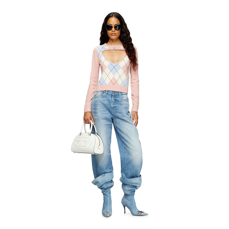Not your ordinary argyle knitwear, this women’s sweater has a daring V-shaped cut-out baring the décolletage and comes with its own ‘jewellery’ – the silver Oval D plaque looks like a pendant necklace peeking from beneath the crew neck. It’s spun from 100% responsibly sourced wool and is free of the classic diamond motif on the back.