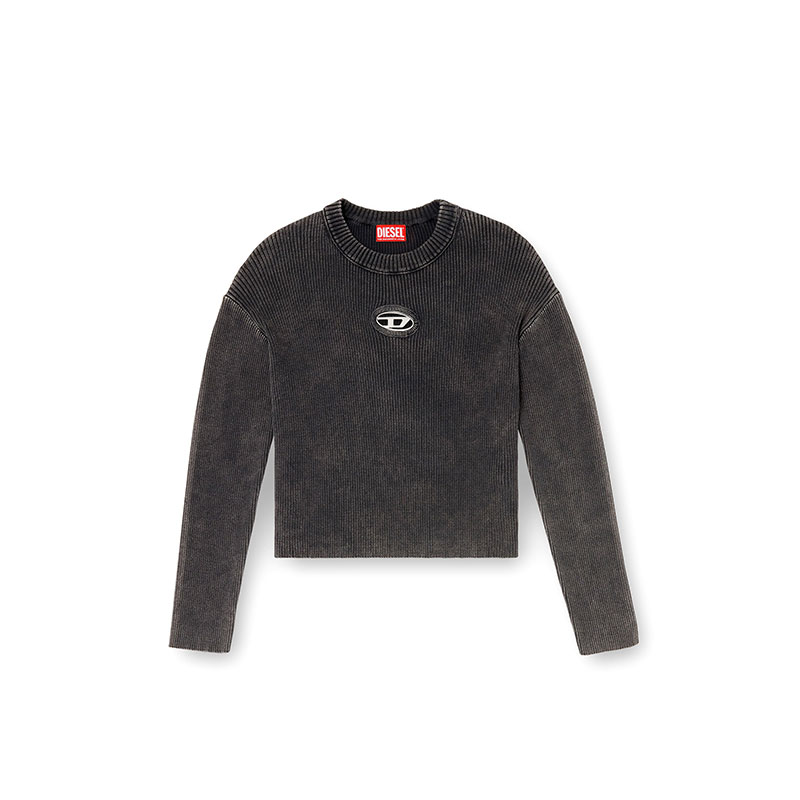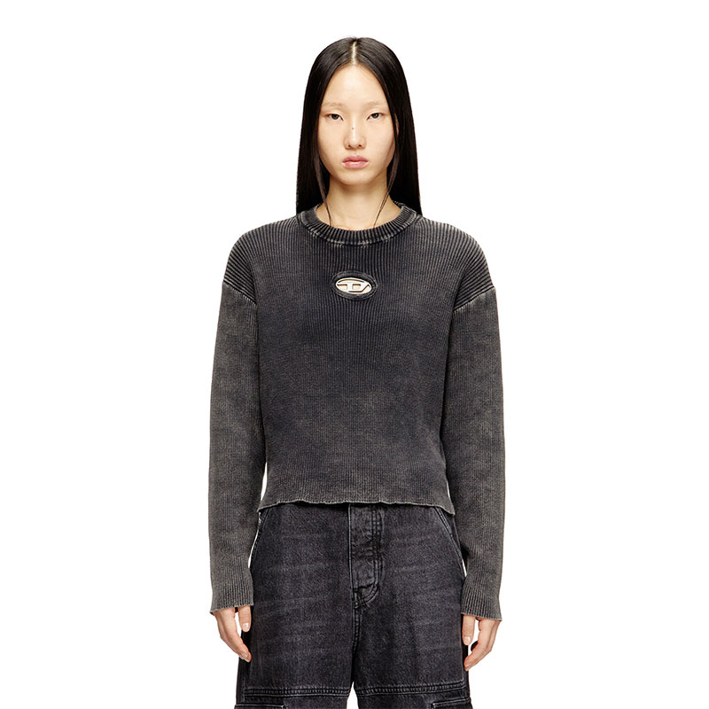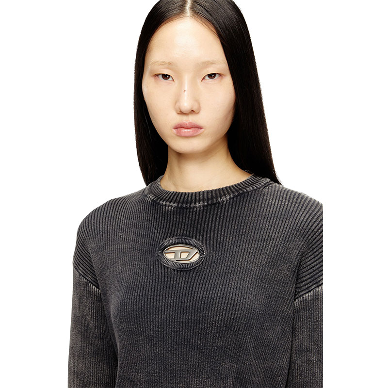 The washed-out hue of this women's sweater nods to the look of lived-in black denim. Rib-knitted from organic cotton, it has an oversized fit and a cut-out embellished with metal Oval D hardware – the peekaboo design means you can show off a hint of skin or whatever’s layered beneath.