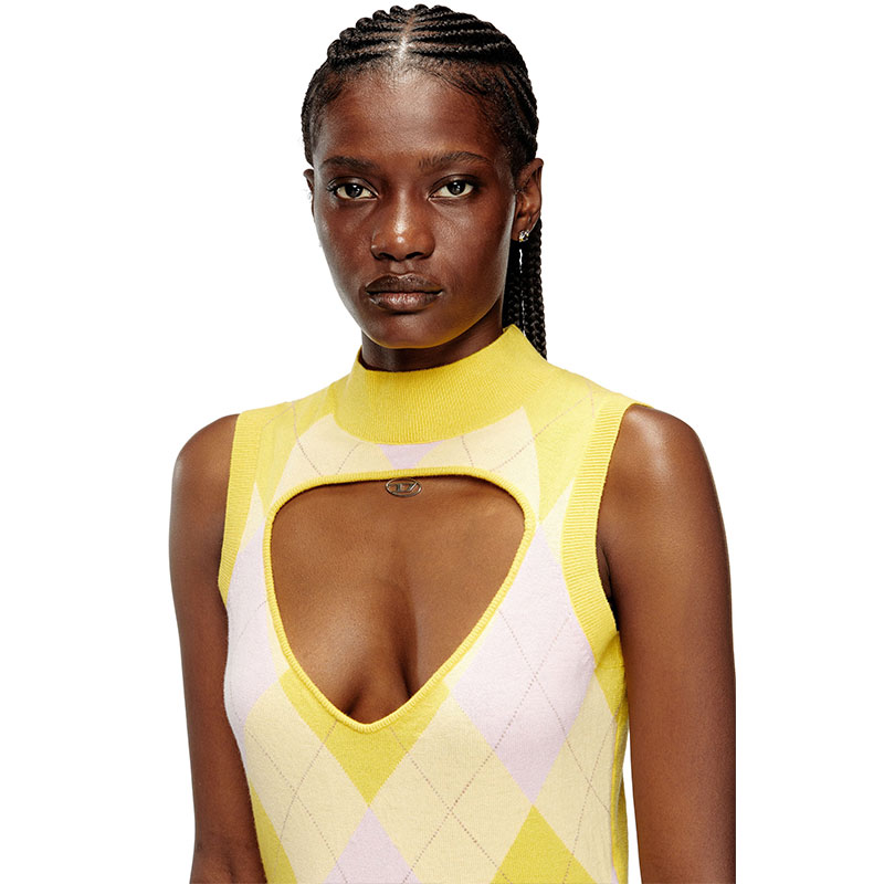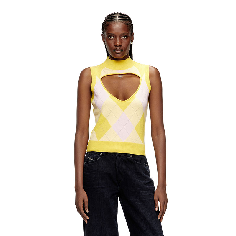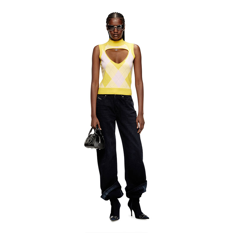 Not your ordinary argyle vest, this women’s knit top has a daring V-shaped cut-out baring the décolletage and comes with its own ‘jewellery’ – the silver Oval D plaque looks like a pendant necklace peeking from beneath the turtleneck. It’s spun from 100% responsibly sourced wool and is free of the classic diamond motif on the back.