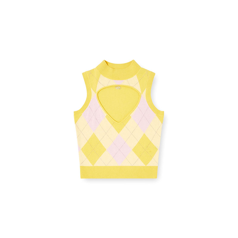 Diesel Women Cut-out turtleneck vest in argyle wool Yellow A195000JLBB