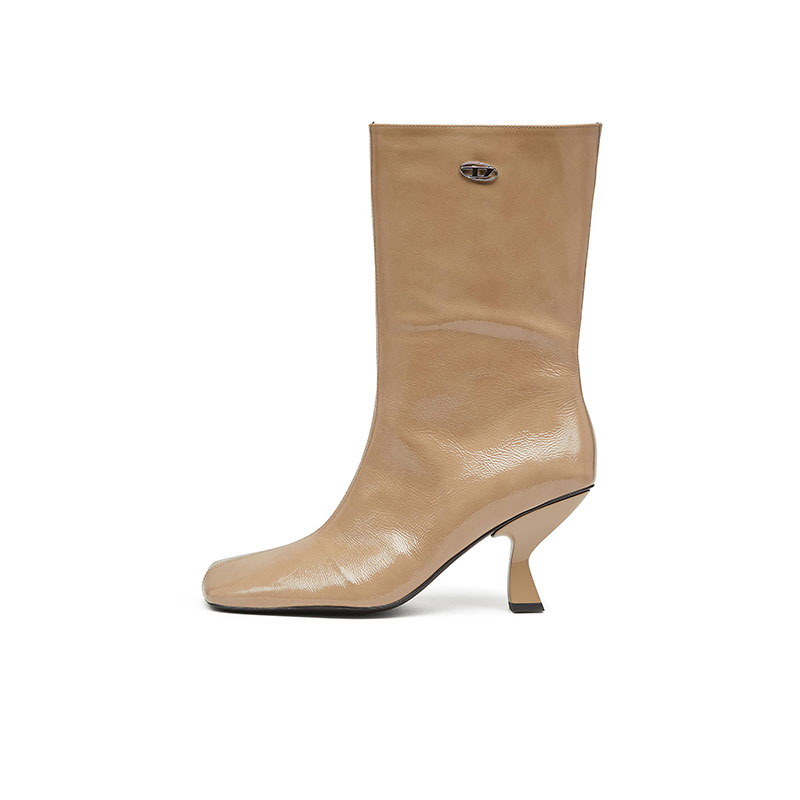 Diesel Women D-Amber-Square-toe ankle boots with naplak effect Beige Y03820P8880