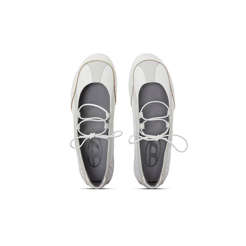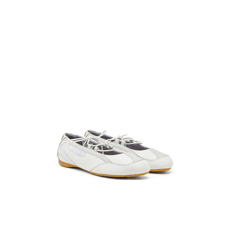 Diesel Women D-Mile-Lace-up ballet flats in leather and mesh White Y03856P7477