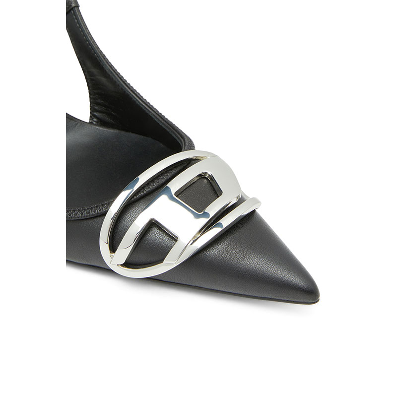 Crafted from supple nappa leather, these pumps combine a point-toe silhouette with oversized logo hardware. They have a double slingback strap and an 9 cm stiletto heel.