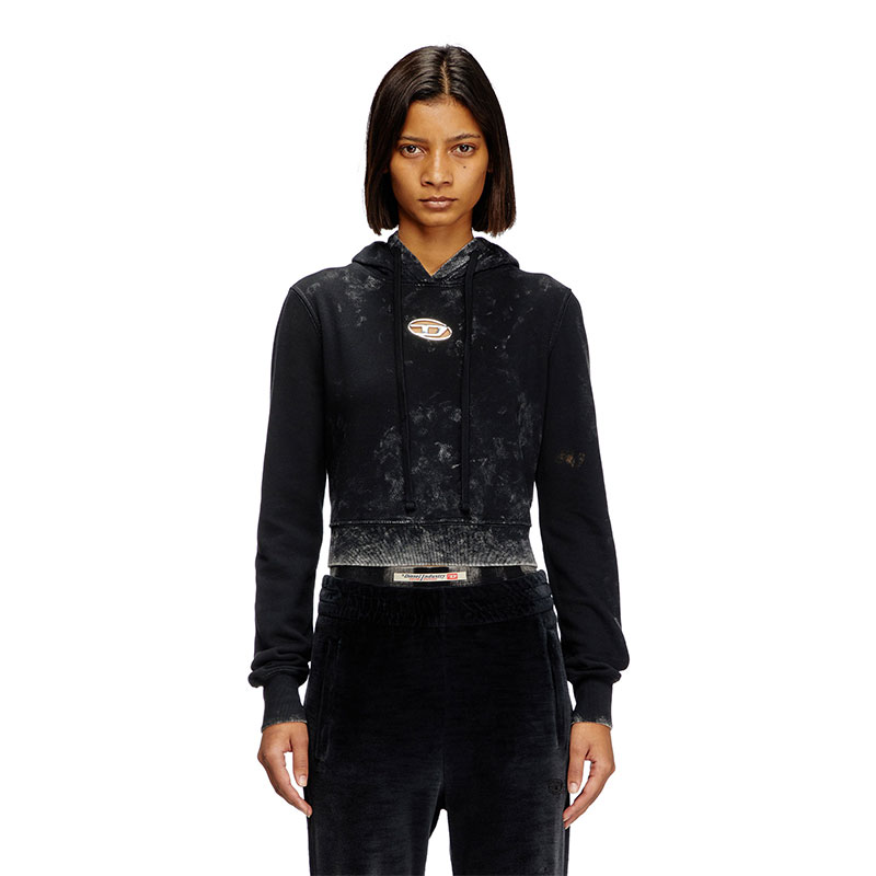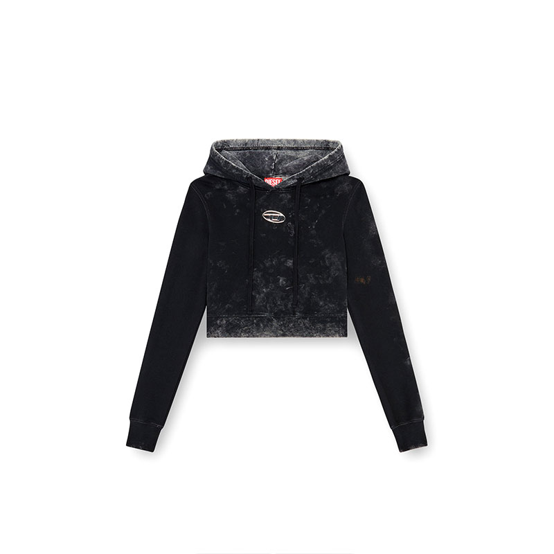 Crafted from organic cotton, this women’s hoodie has a slightly cropped, close-fitting silhouette and the look of a vintage find. The effect is achieved by using slightly textured, raw-effect yarn and treatments that impart irregular fading. The cut-out metal Oval D plaque on the front show slivers of chest.