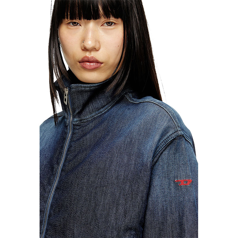 This light women's jacket is made from JoggJeans for the utmost comfort. The silhouette features slightly dropped shoulders, welt pockets, and a red D logo embroidered on the sleeve.