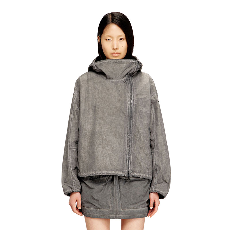 Women’s hooded windbreaker jacket with an off-centre zip fastening and a drawstring-adjustable hem. Cut for a relaxed fit, this style is made from high-performance Taslan fabric and cold-dyed with pigments to impart a lived-in fade full of tonal depth. An embroidered Oval D logo accents the sleeve.