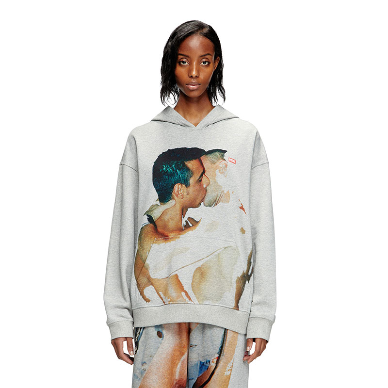 This hooded sweatshirt is part of an annual Pride capsule created in collaboration with the Tom of Finland Foundation. A genderless design, it’s made from mélange loopback jersey using organic cotton and fits a little boxy. The printed graphic depicting a male couple engrossed in a kiss has been selected from the Foundation’s vast collection of erotic queer art. Complete with a rubber-touch chest logo and a rear herringbone tape featuring an inspiring quote from Tom of Finland himself.
