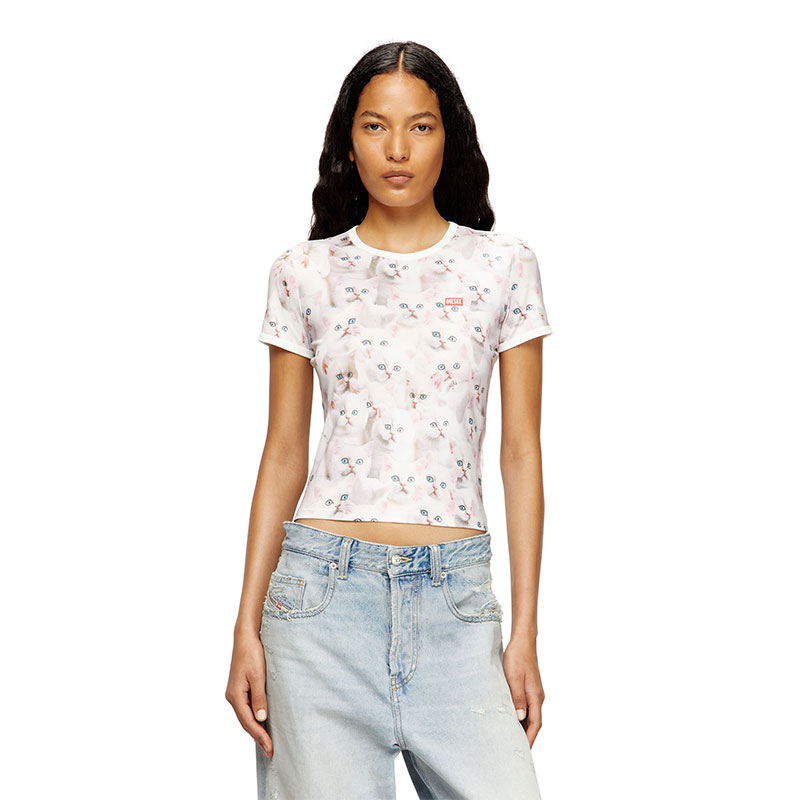 Slim-fit top with crew neck and short sleeves, featuring an all-over print. The stretchy fabric ensures a snug and comfortable fit. The neck and sleeves have contrasting trim, while the Biscotto logo is applied on the front.