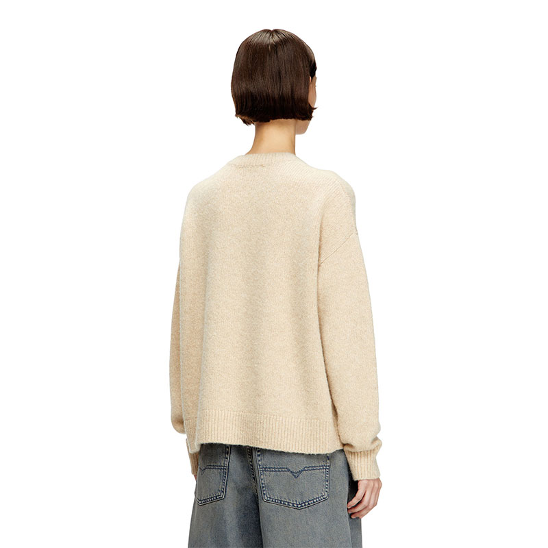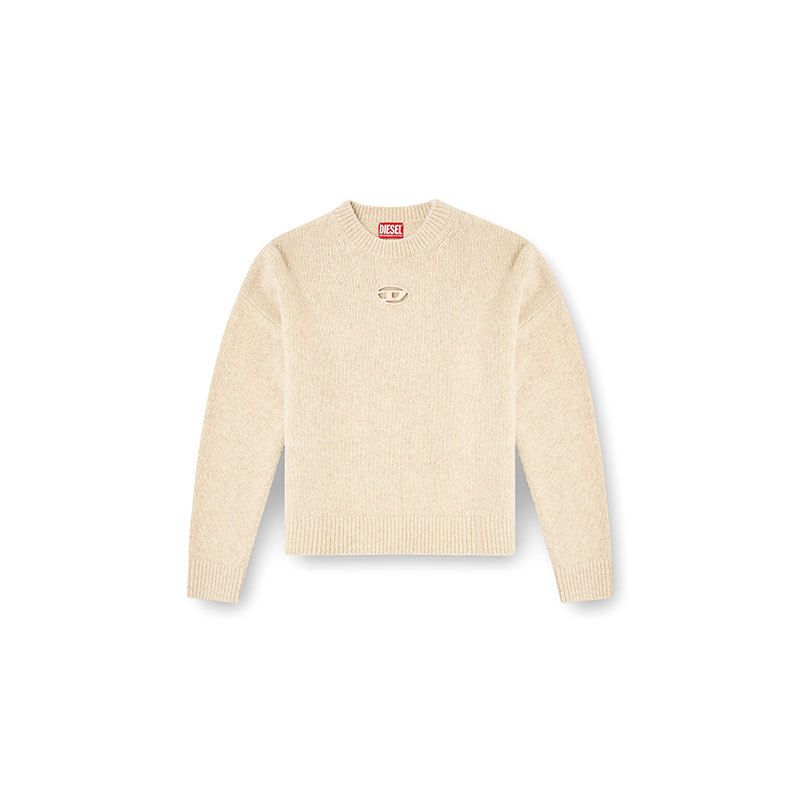 This women’s sweater is knitted from a soft and insulating blend rich in responsibly sourced wool and alpaca. It's shaped with dropped shoulders and features an unconventional logo twist – the cut-out embroidered Oval D on the front reveals flashes of skin or any layer beneath.