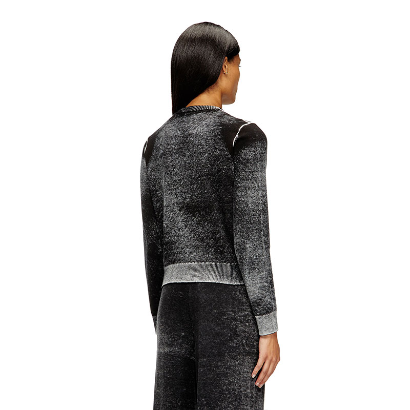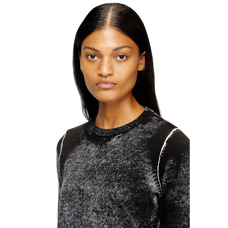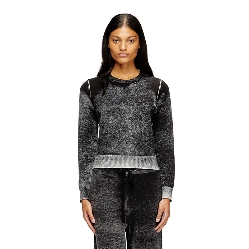 This women’s cotton sweater has been specially printed on the inside, resulting in a softened, uneven colour. The effect of this technique is particularly visible on the ribbed trims, where the tone is decidedly lighter. It's shaped for a regular fit and hallmarked with a minimal embroidered logo on the chest.