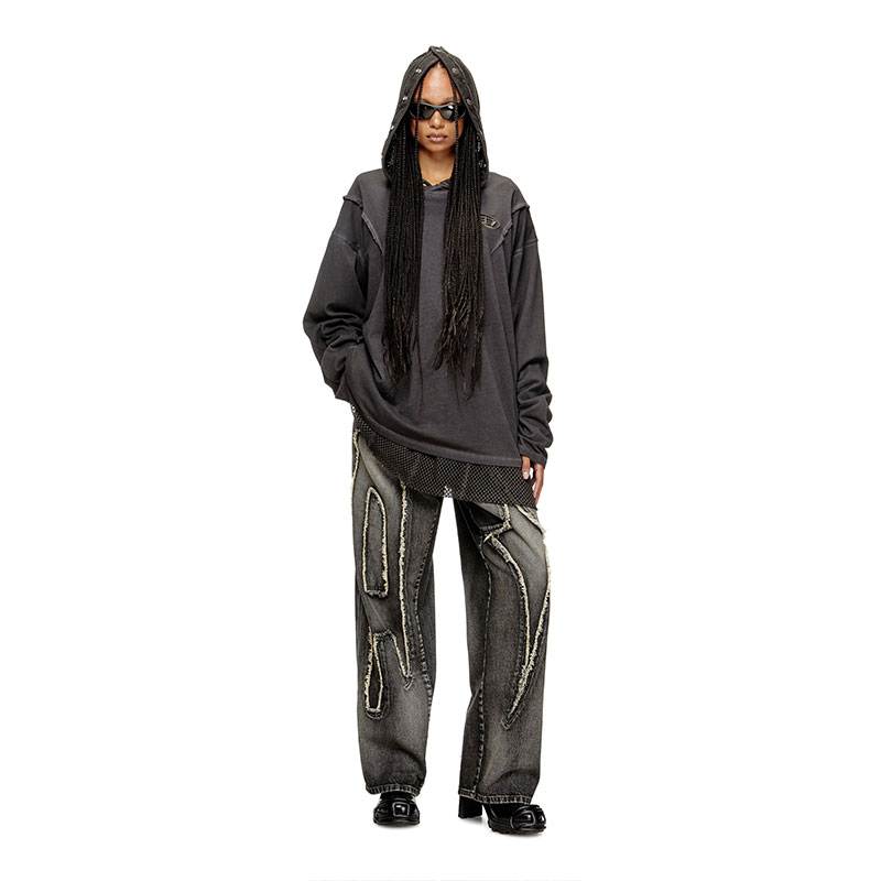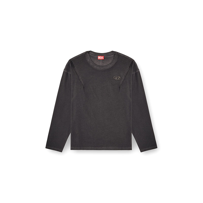 Diesel joins forces with Thug Club — a Seoul-born label turned global streetwear power. The union forges an eight-piece capsule alive with underground energy, defiant in spirit and fearless in expression. Part of the collection, this unisex long-sleeve tee in cotton jersey has a roomy cut and an effortless, lived-in fade. Over the shoulders and down the back, tactile raw seams disrupt the silhouette with a deconstructed edge. The collection's exclusive co-branding hallmarks the chest.