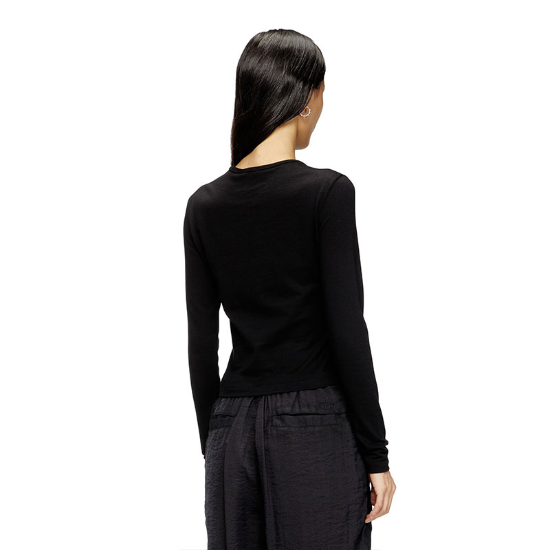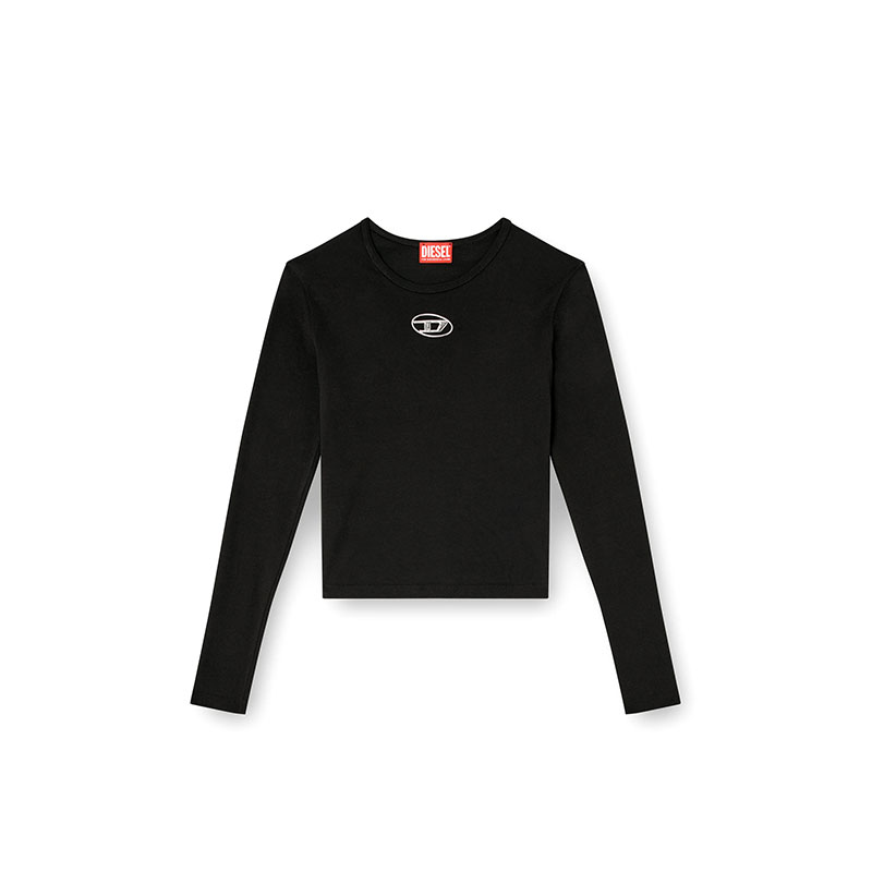 This women's long-sleeve top is built from stretch jersey containing organic cotton. An injection-moulded Oval D breaks up the slim silhouette with a subtle cut-out on the chest.