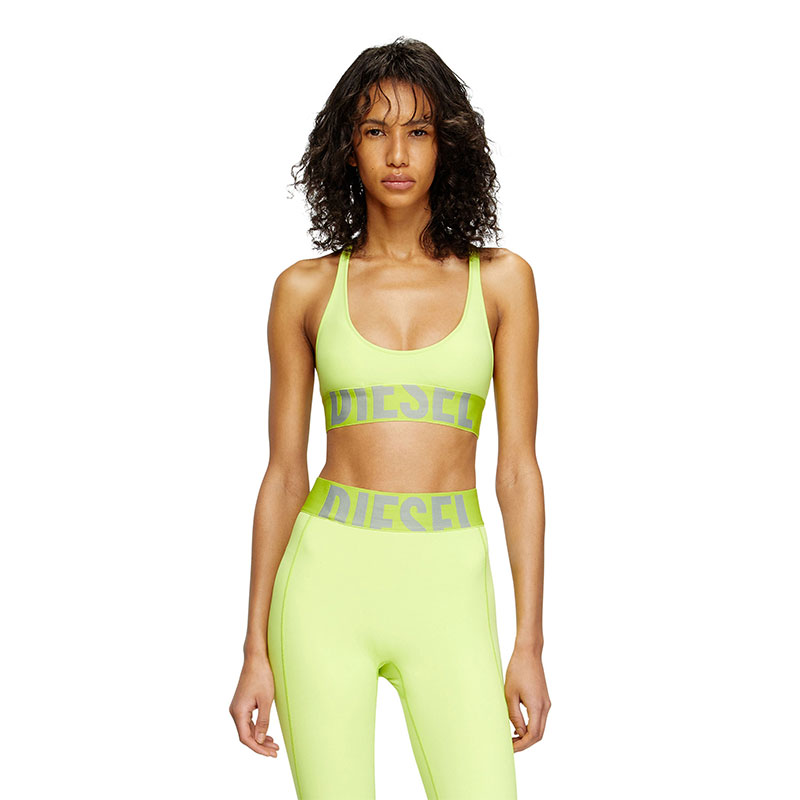 Diesel Women Microfibre sports bra with cut-off logo Green Fluo A182770PLAR