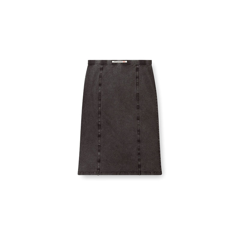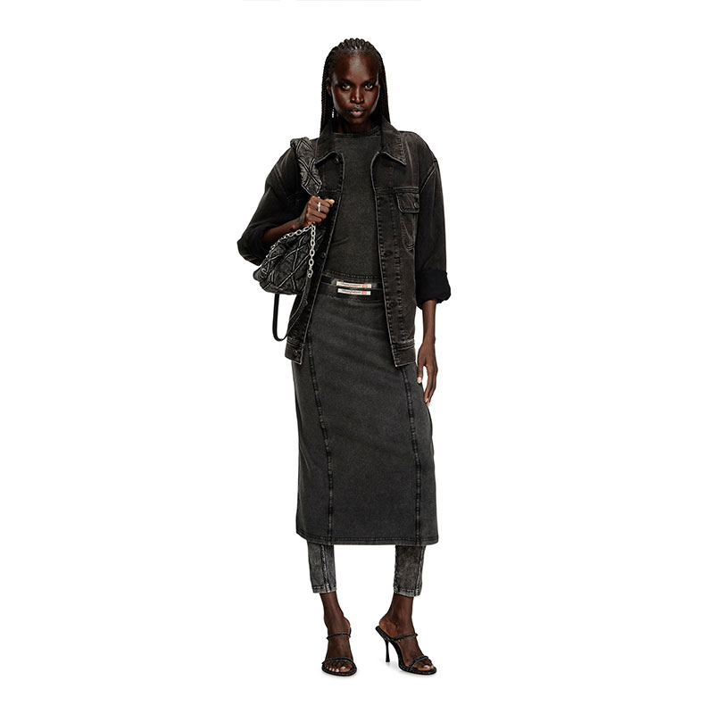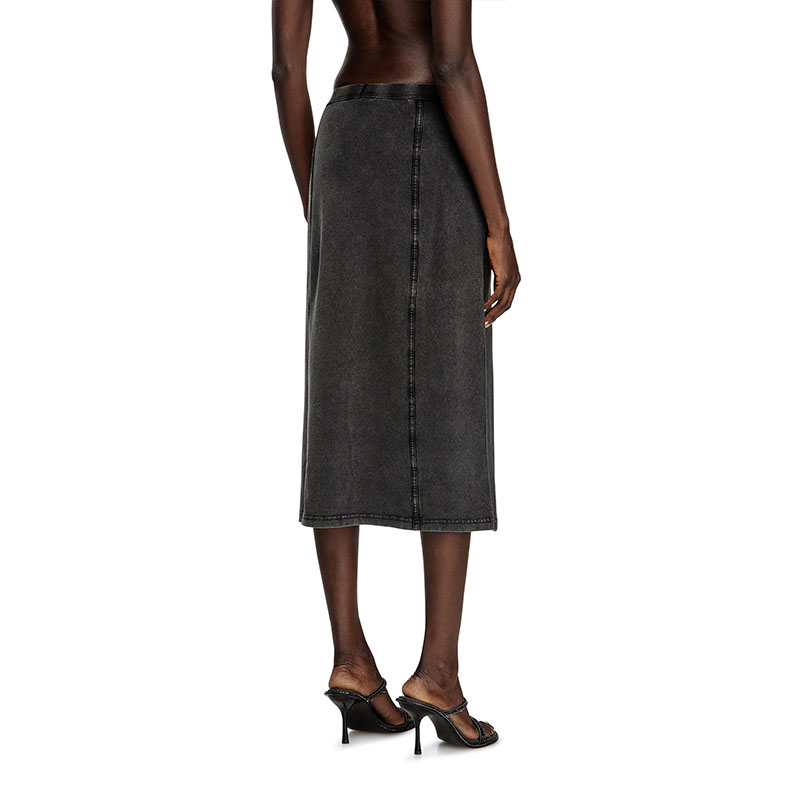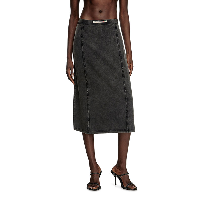 In a meta twist, this women's midi skirt references a line of Diesel's denim-effect underwear – note the acid-wash fade, double seams and waistband detailed with the iconic fifth pocket logo. It's panelled from stretch cotton jersey in a slim pencil silhouette.