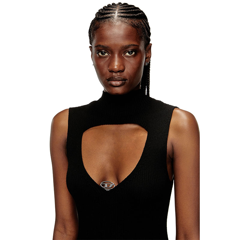 Diesel Women Cut-out ribbed jumper with Oval D plaque Dark grey A220460AKBQ