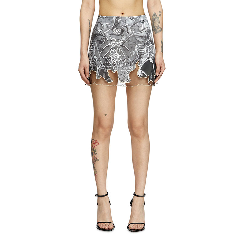Diesel Women Nylon mini skirt with Heraldic print Grey A184170BJBT