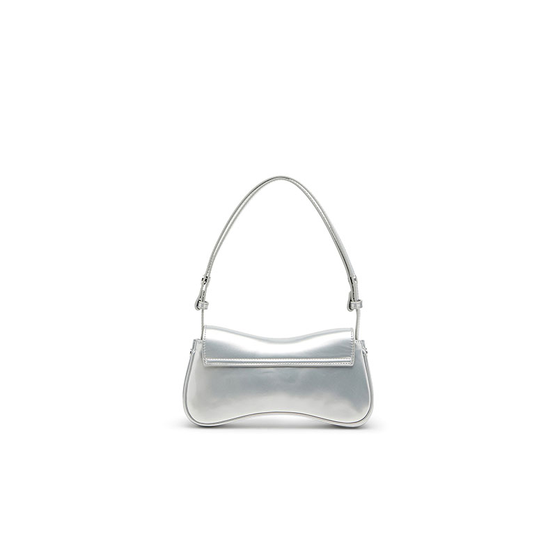 Whether day or night, this women’s metallic bag takes the spotlight. It’s crafted from shiny silver PU in the iconic ‘Play’ silhouette – a nod to video game controllers. A tonal metal Oval D plaque accents the flap closure. Carry it tucked under your arm or attach the strap to go hands-free.