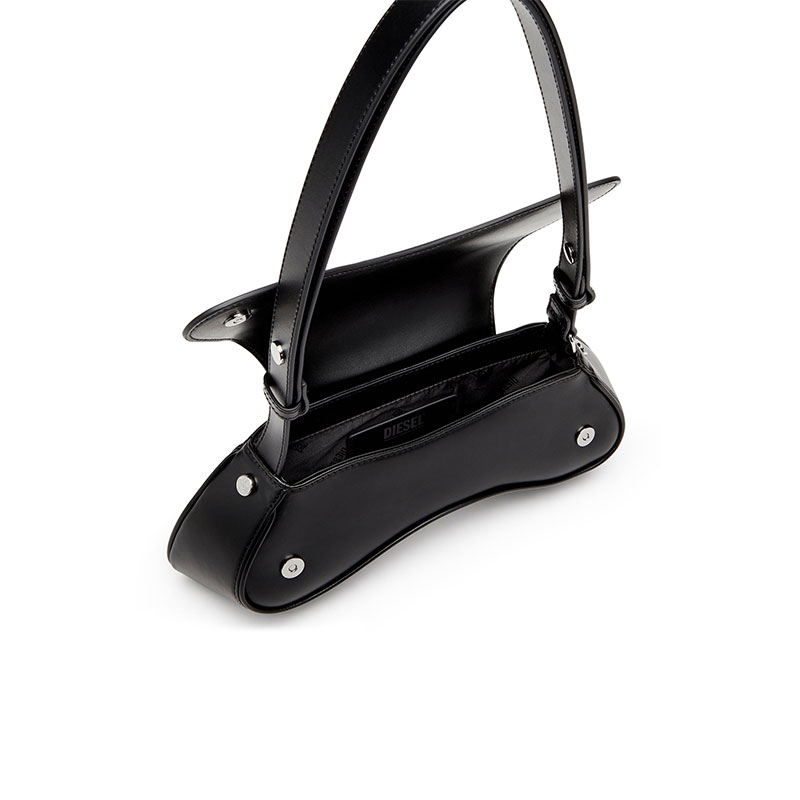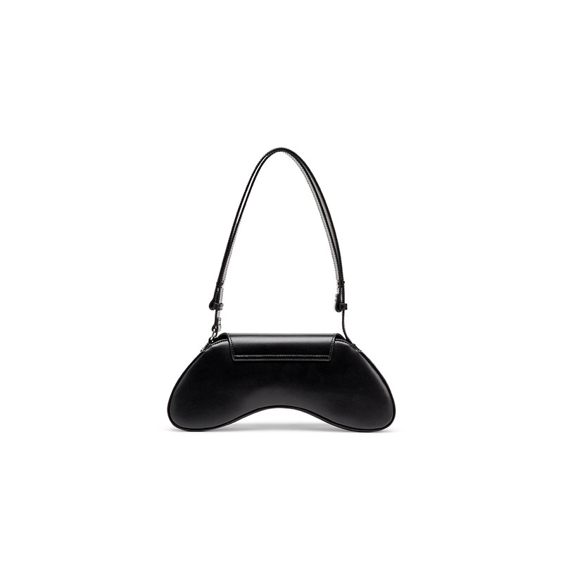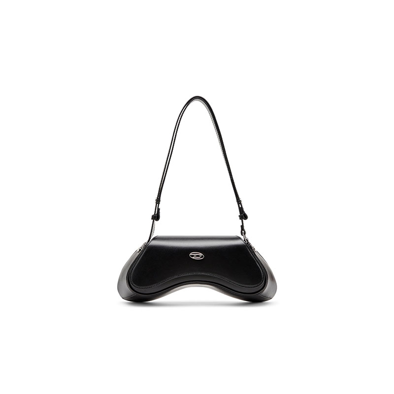 This women's bag looks sleek and playful thanks to its sinuous shape inspired by gaming controllers. It's crafted from smooth leather with a semi-gloss finish, embellished by shiny Oval D hardware on the flap. The shoulder strap is adjustable and fits crossbody.