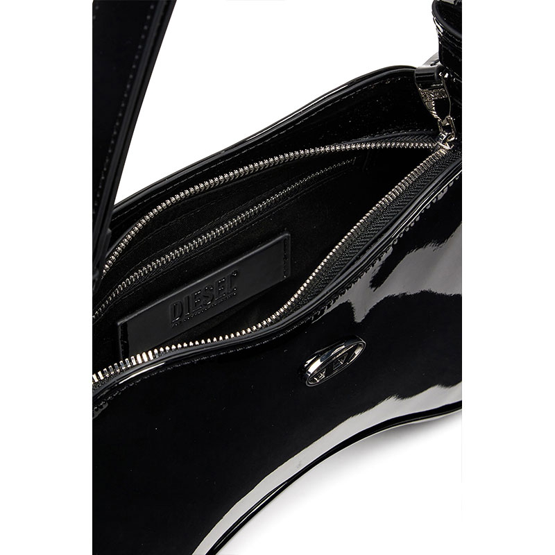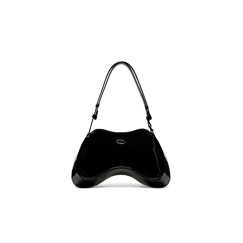 This women's structured bag looks sleek yet fun thanks to its playful asymmetric shape inspired by gaming controllers. Featuring a smooth, glossy finish, it's crafted using recycled materials with a zip-fastening top and subtle enamelled Oval D hardware. The shoulder strap is adjustable to customise the drop.