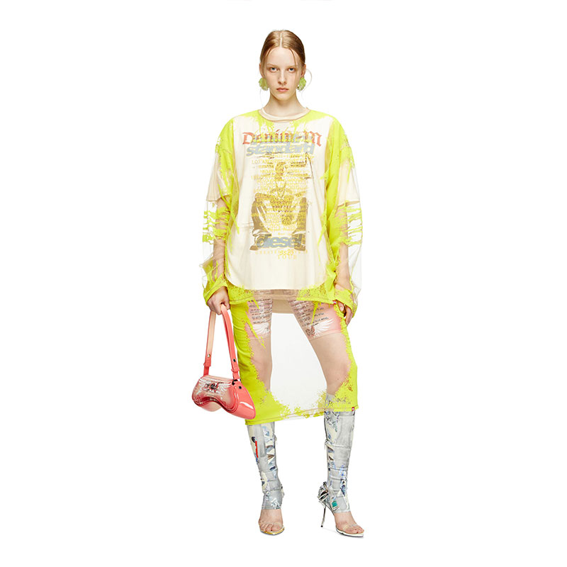 Diesel Women Play-Shoulder bag in printed glossy PU Pink X10221P6019