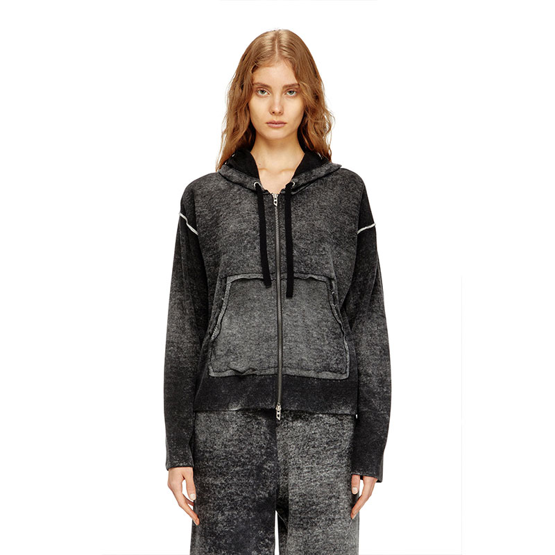Diesel Women Reverse-print hooded cardigan in wool Black/Grey A220360TKCY