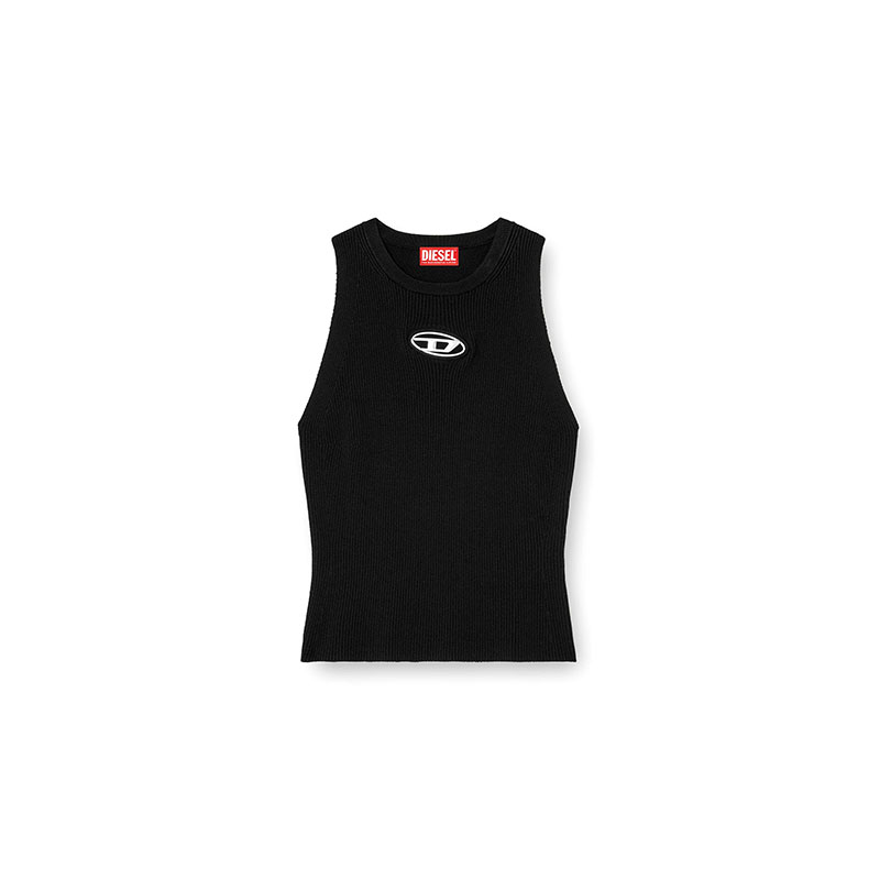 Diesel Women Rib-knit top with small logo plaque Black A174500DLAX