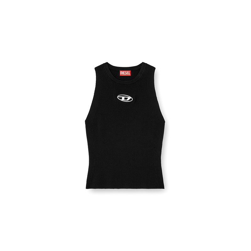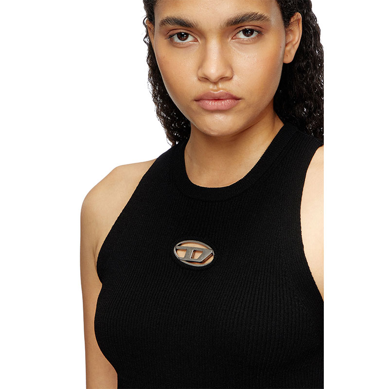 This women’s tank top is knitted from a soft blend containing 83% viscose from responsibly managed forests. The plated ribbing features contrasting textures on the front and back. The small metal Oval D plaque nestled in the chest cut-out shows off a hint of skin.