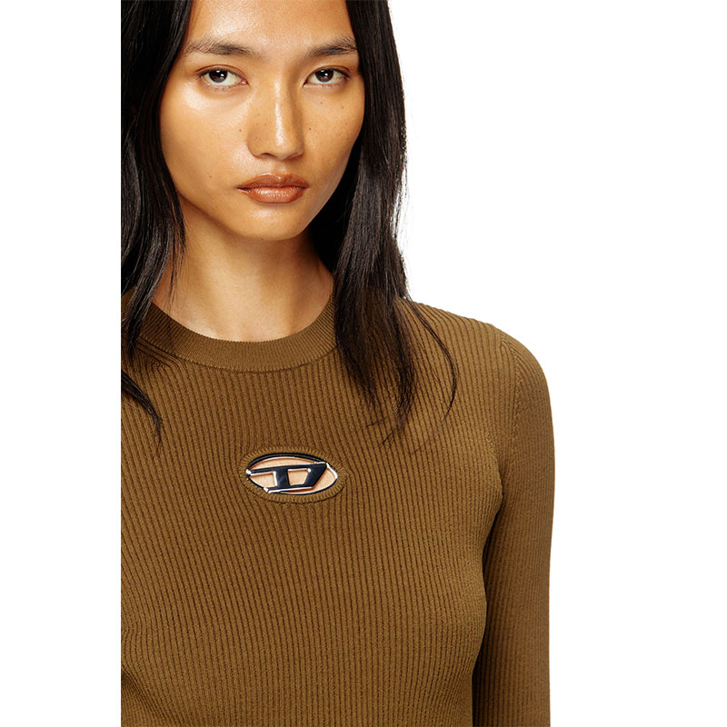 Diesel Women Rib-knit viscose-blend top with Oval D Brown A153280DLAX