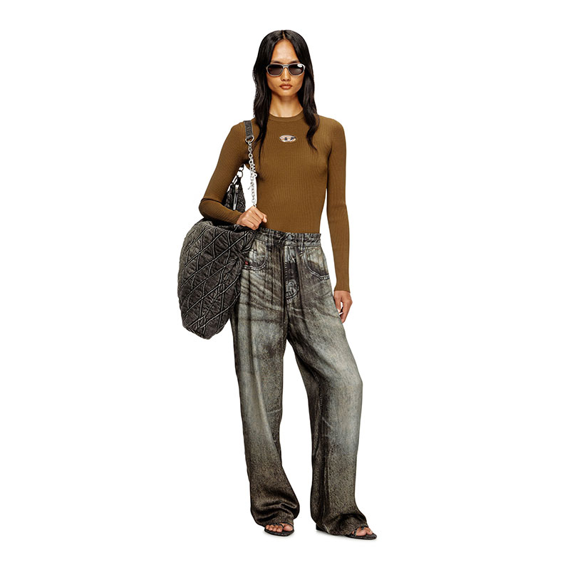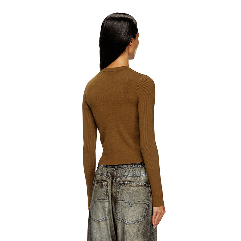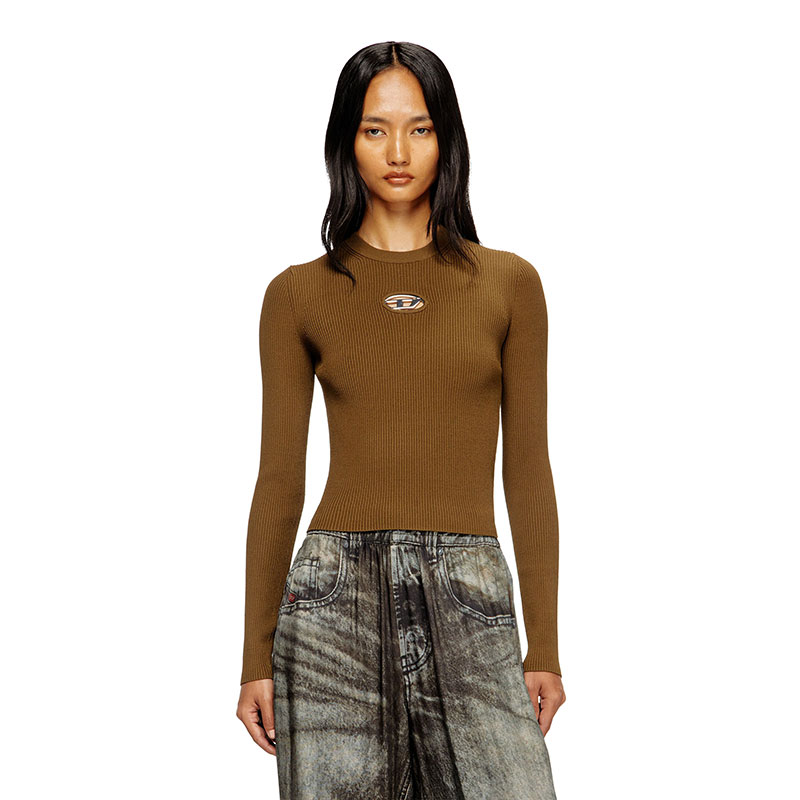 Women’s top in soft ribbed knit, spun from a blend containing viscose from responsibly managed forests. Designed for a close fit, this style has a crew neck and long sleeves. The metal Oval D plaque nestled in the chest cut-out adds a twist to a minimalist silhouette.