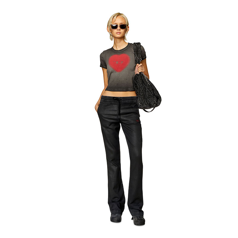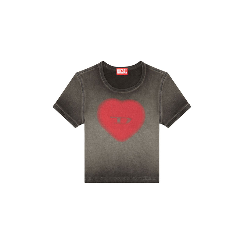 Diesel Women Ribbed T-shirt with watercolour heart D Black A128360SQAD