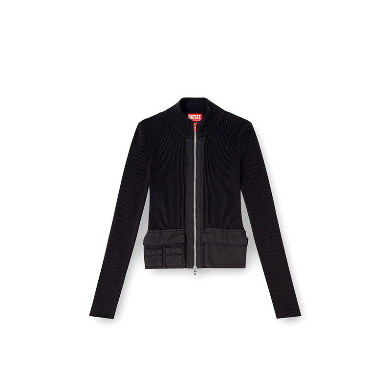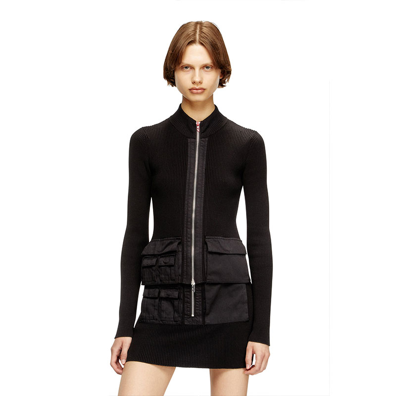 Diesel Women Ribbed cardigan with cargo pockets Black A168950JLCR