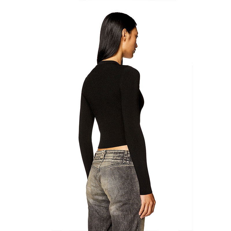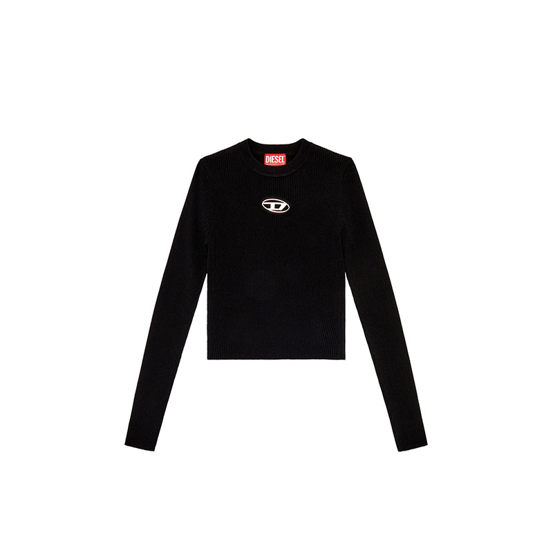 This women’s ribbed-knit top features an updated interpretation of the Oval D logo, rendered as a metal plaque inserted into the chest cut-out. The long-sleeve silhouette is snug yet flexible and has a slightly cropped hem.