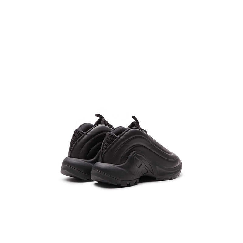 Designed for all genders, this matte-finish ridged trainer flaunts a statement arched silhouette. Its slip-on design features a mesh tongue insert with elasticated cross-cross laces. Set on a rubber running sole with an Oval D wrapping around the instep.