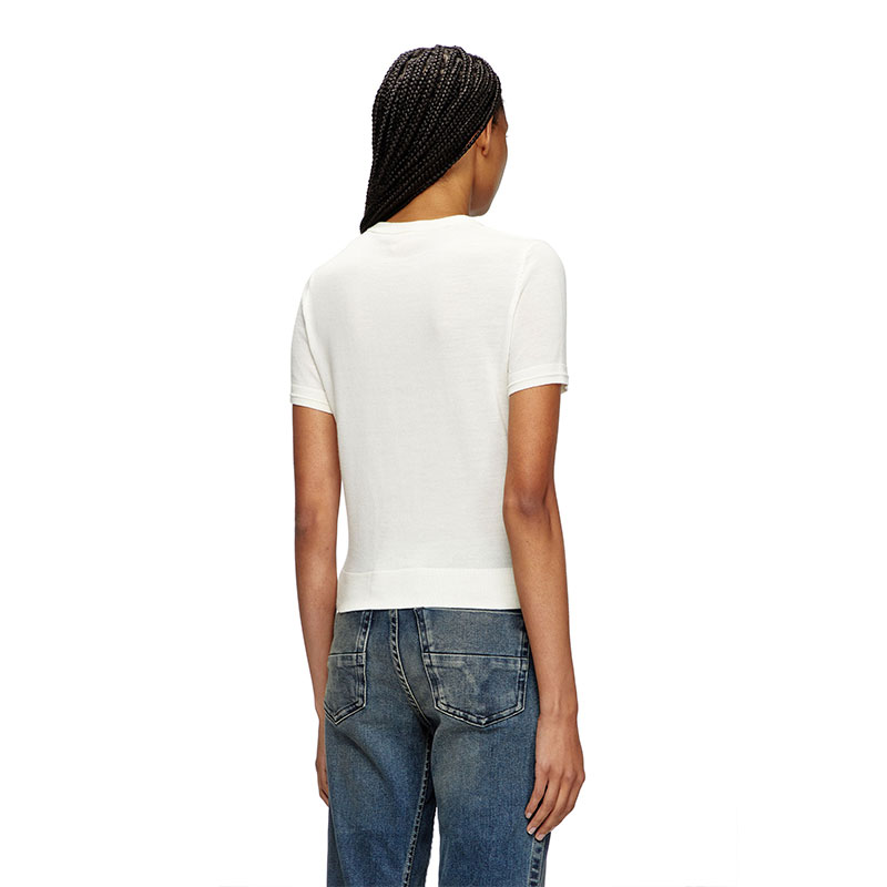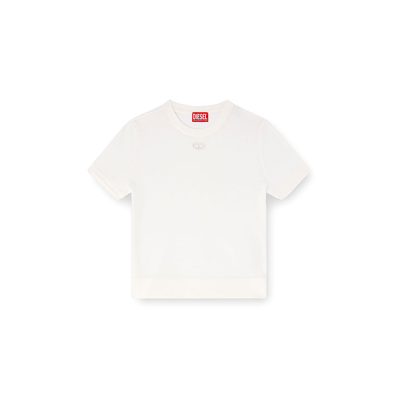 Subtle details set apart this women’s short-sleeve sweater – the cut-out embroidered Oval D logo allows for a flash of skin, while ridged ottoman stitches give the cuffs a little more dimension. It's knitted from responsibly sourced wool and has a regular fit.