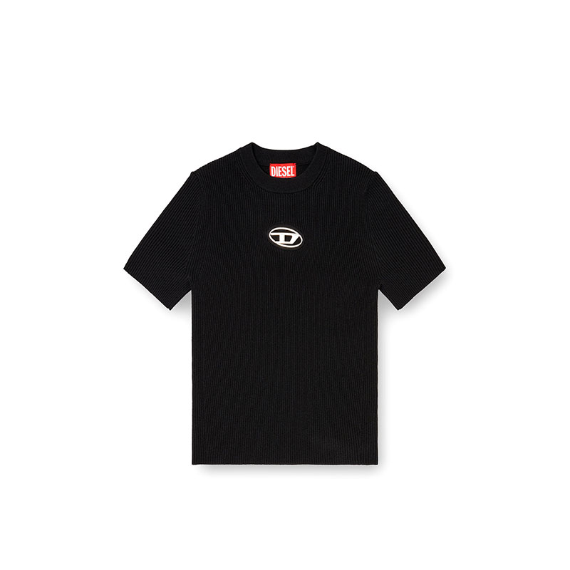 Diesel Women Short-sleeve jumper with metal Oval D Black A196740DLAX