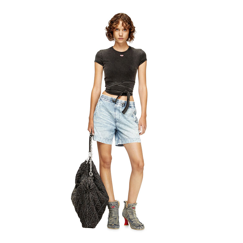 Diesel Women Shorts in marbled denim Light Blue A1865609M39