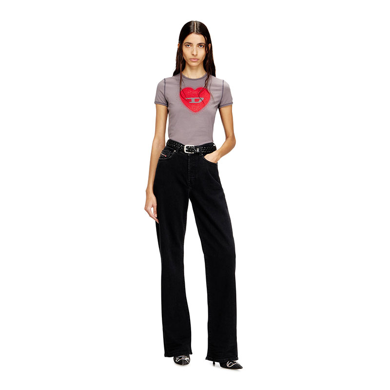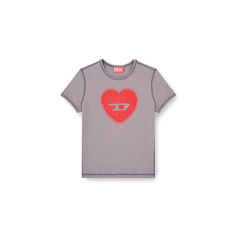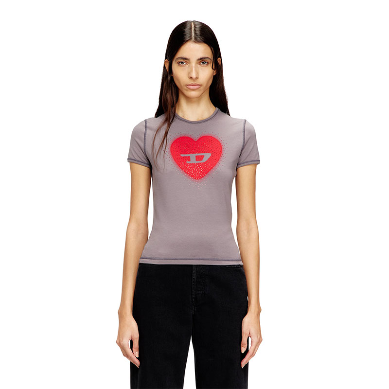 Diesel Women Slim T-shirt with heart print and studs Grey A209800QHHA