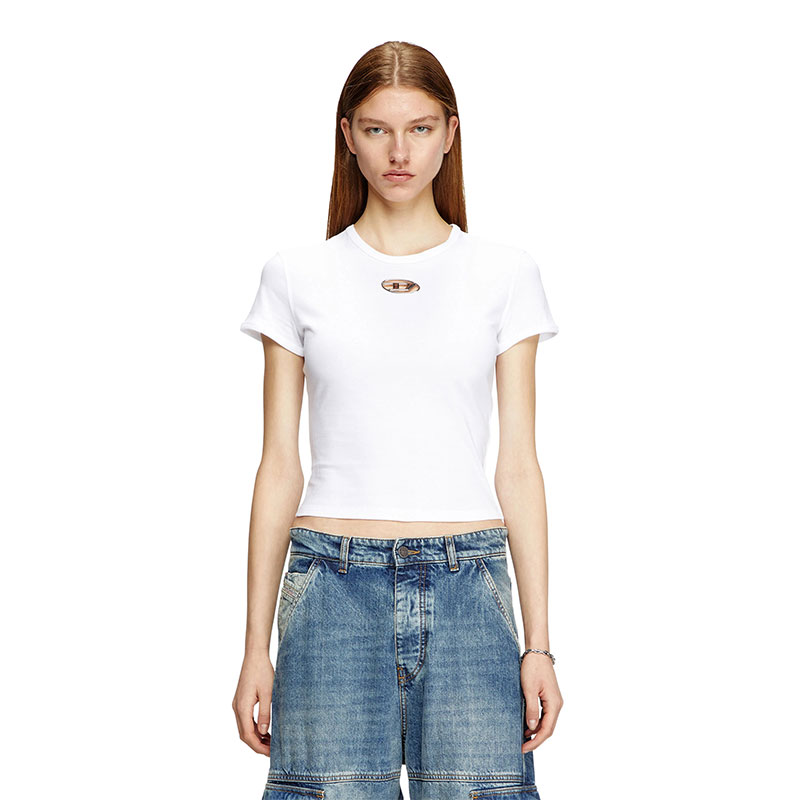 Diesel Women Slim fit T-shirt with cut-out Oval D White A168390CLBR