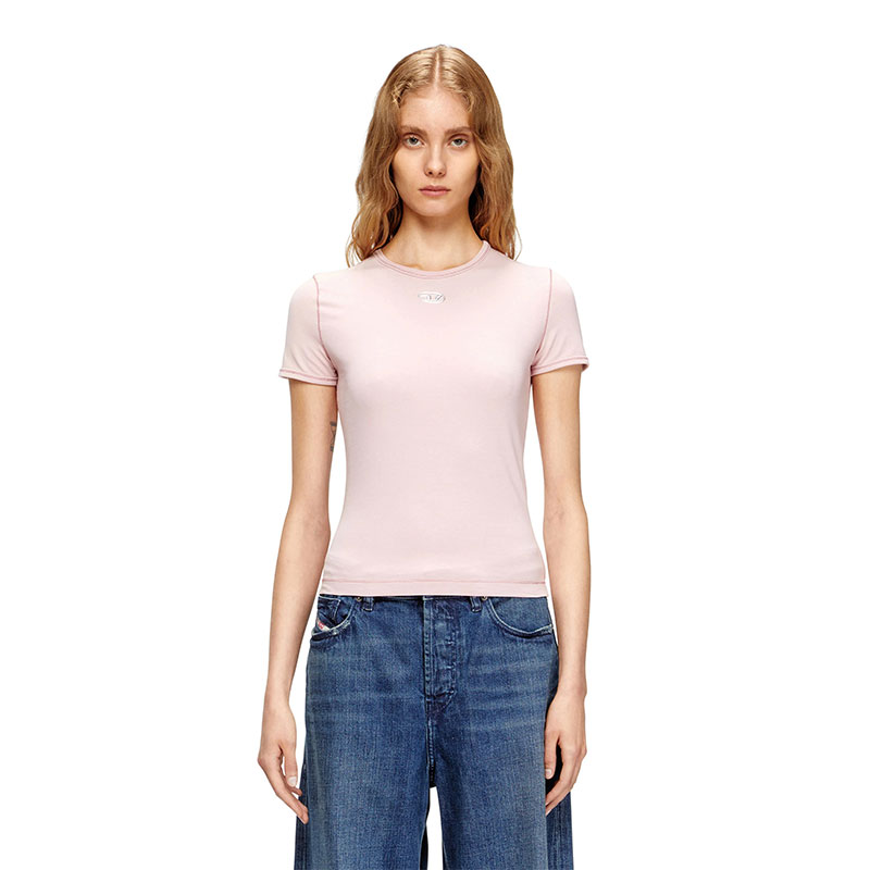 Diesel Women Slim-fit T-shirt with metallic Oval D Pink A199170AHQH