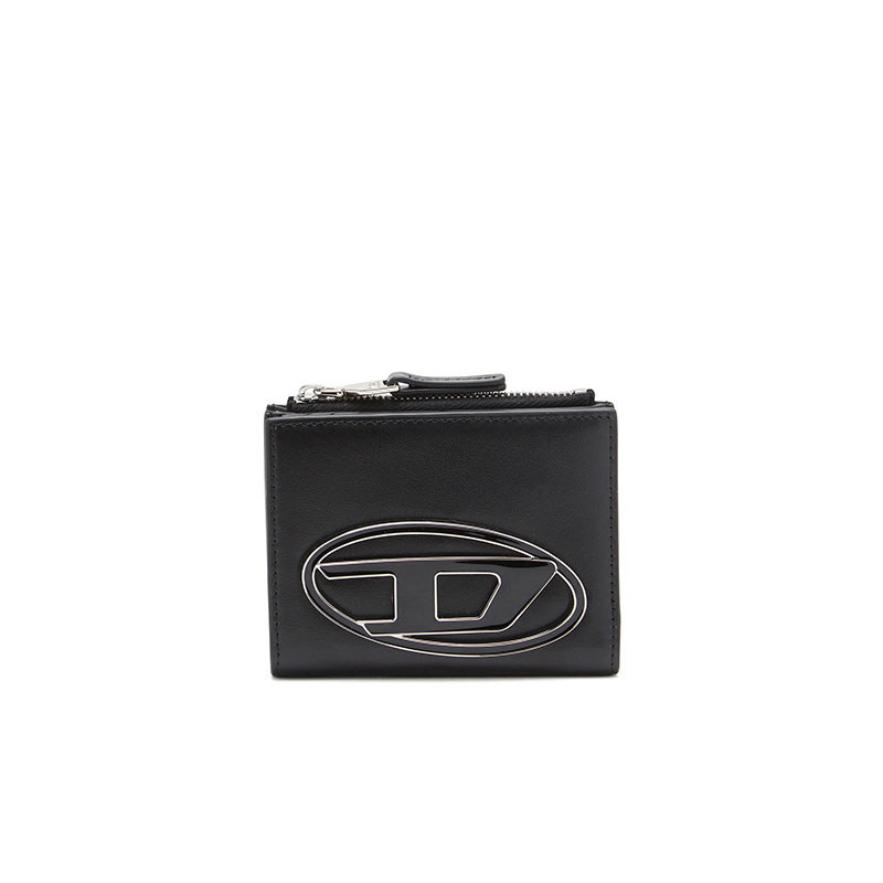 Women's wallet crafted from calf leather, embellished with a chunky Oval D plaque in enamelled metal. The compact, bi-fold design has a snap-fastening section for cards and notes and a quick-access coin pocket fastened with a zip.