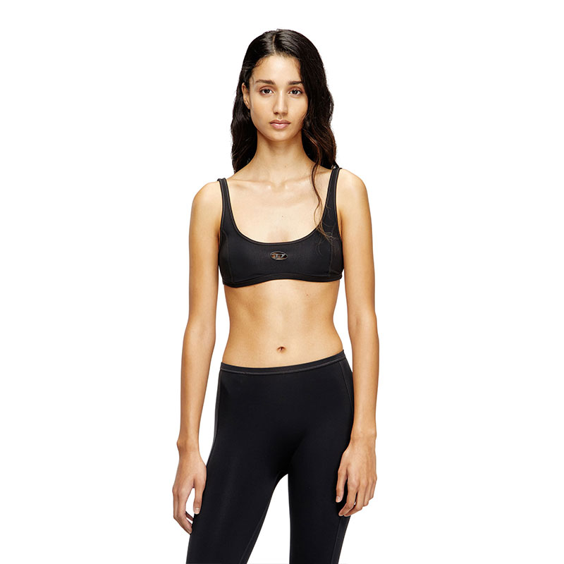 This sporty bra is made from smooth and ultra-soft microfibre fabric containing a percentage of recycled fibres. Fitted with removable cups, it's engineered to wick-away moisture and offers a snug yet non-restrictive fit. The front is embellished with a tonal cut-out Oval D logo.
